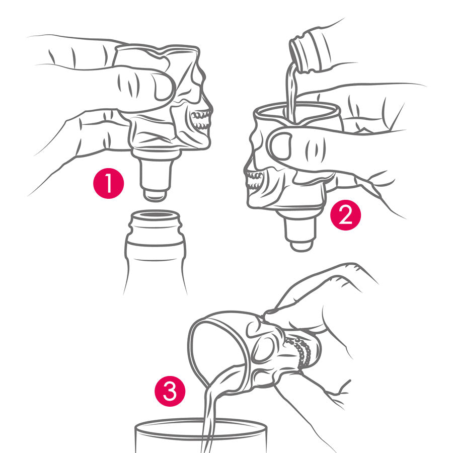 Package Components 1 x 3-in-1 Skull Shot Glass & Bottle Stopper