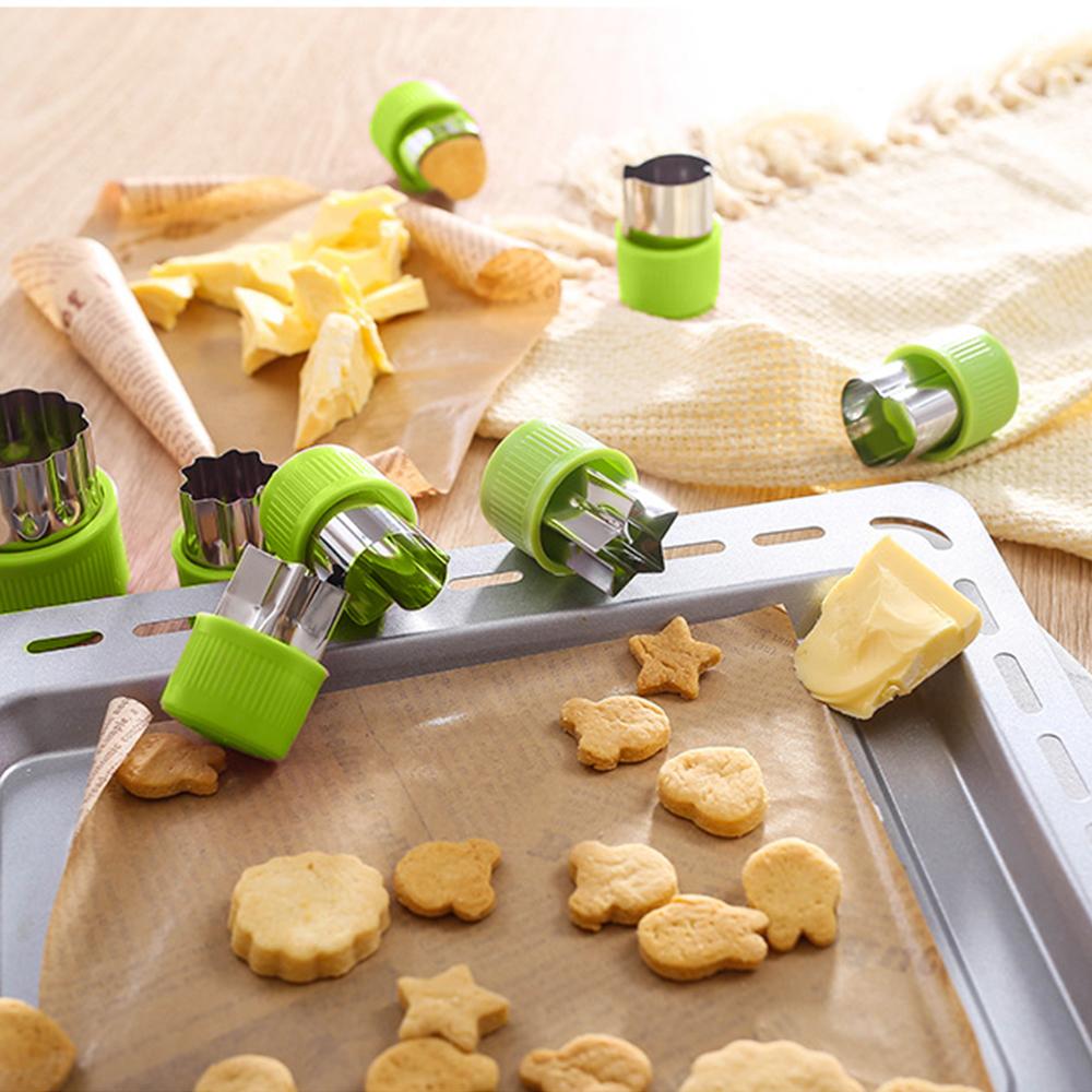 Cute 9 Piece Stainless Steel Shape Cutters for chocolate, cakes, biscuits, vegetables and more! Safe and comfortable for your hands with a protective plastic handle.